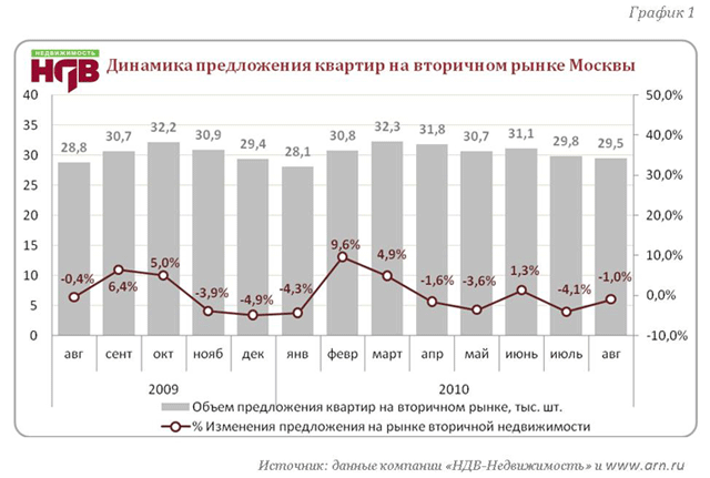 Ситуация на рынке вторичной недвижимости Москвы в августе 2010 г.
